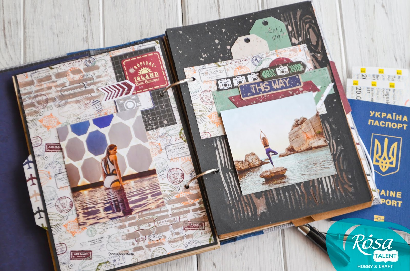 Свій тревелбук я зробила в мякій обгортці і закривається він на резинку. В середині кільцевий механізм, тобто всі сторінки і розділи можна міняти місцями, або додавати нові листки.